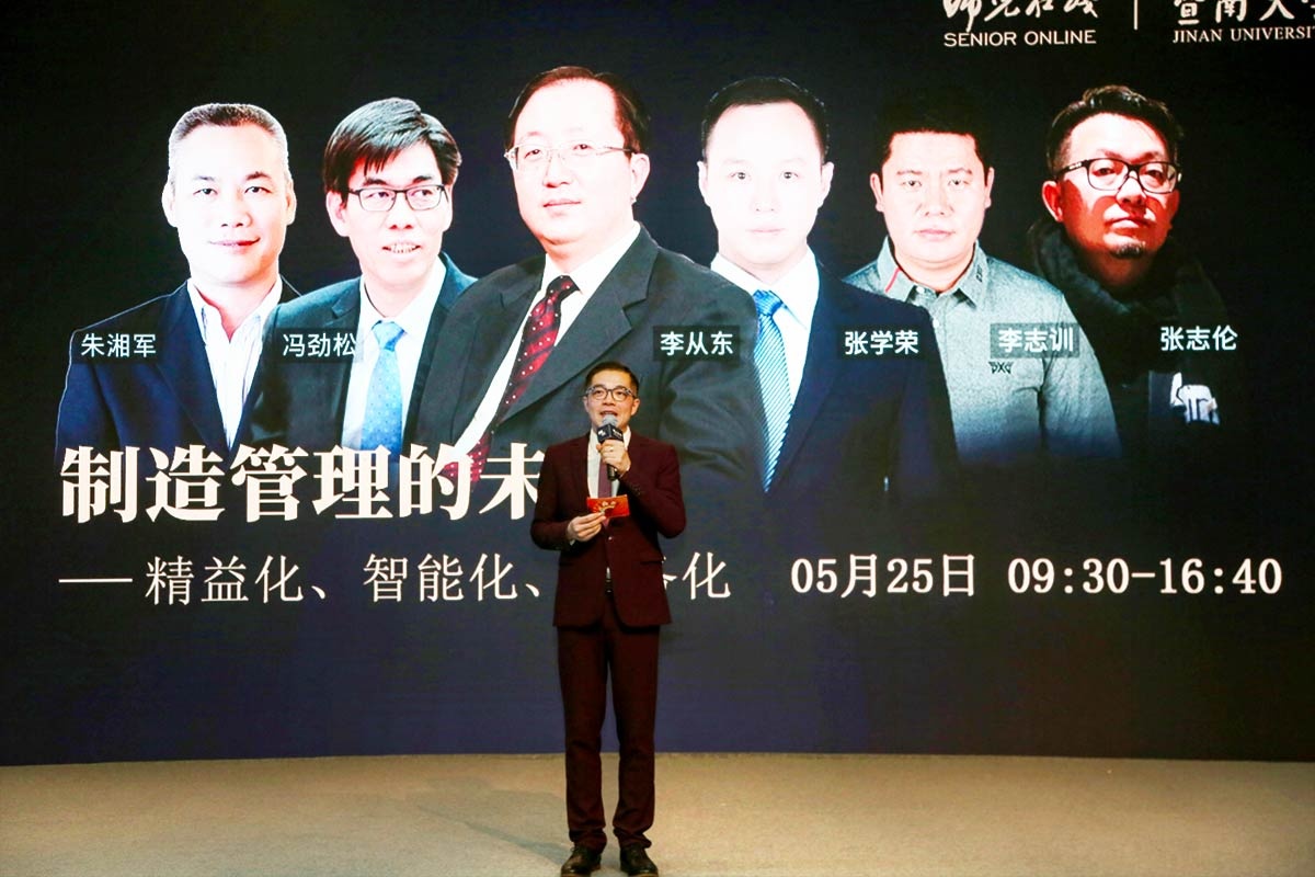 5 月25 日,师兄在线季度公开课在广州暨南大学管理学院隆重举行,由中国机械工程学会工业工程分会副理事长、原暨南大学管理学院院长、原天津大学工业工程系主任李从东教授领衔,与五位制造管理领域的精英企业家同台分享,一起探索中国制造业的未来,国家级高新技术企业GVS视声创始人朱湘军董事长受邀开讲此次公开课。